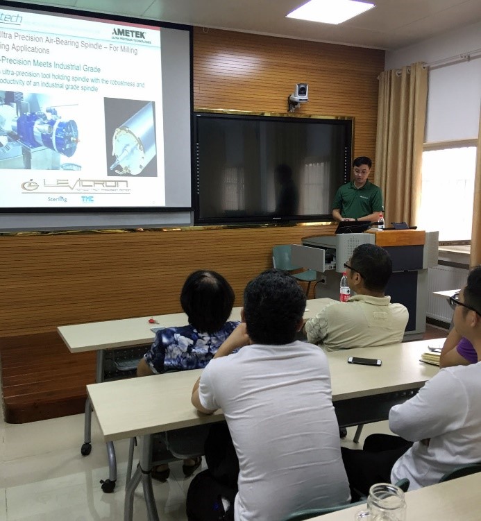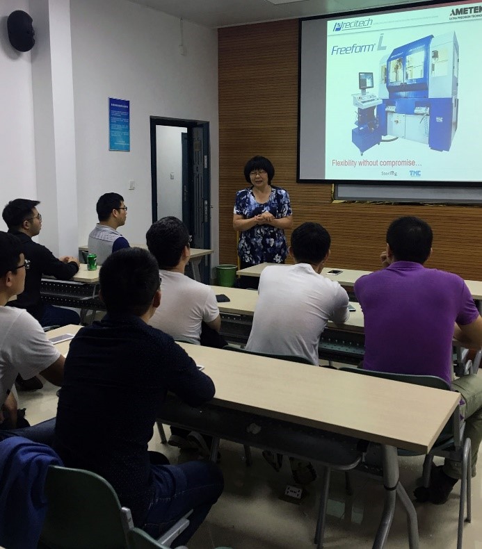 目前Freeform L已安装调试完毕,为更好地服务于本校师生,使其尽早投入使用。9月1日上午,工程实践中心邀请了Precitech公司工程师蔡军在力学二楼多媒体教室进行了一次系统的理论培训,就机床的性能指标、工作原理、重要应用及基本操作等做了详细的介绍。并在当日下午现场演示了机床超精密加工过程。