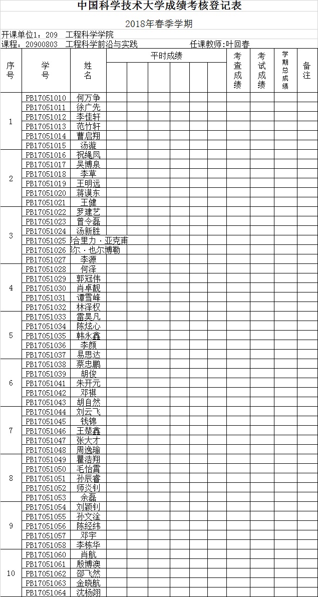 2018年春季学期《工程科学前沿与实践》实践部分周四分组名单