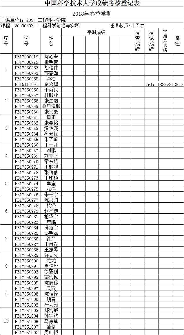 2018年春季学期《工程科学前沿与实践》实践部分周二分组名单