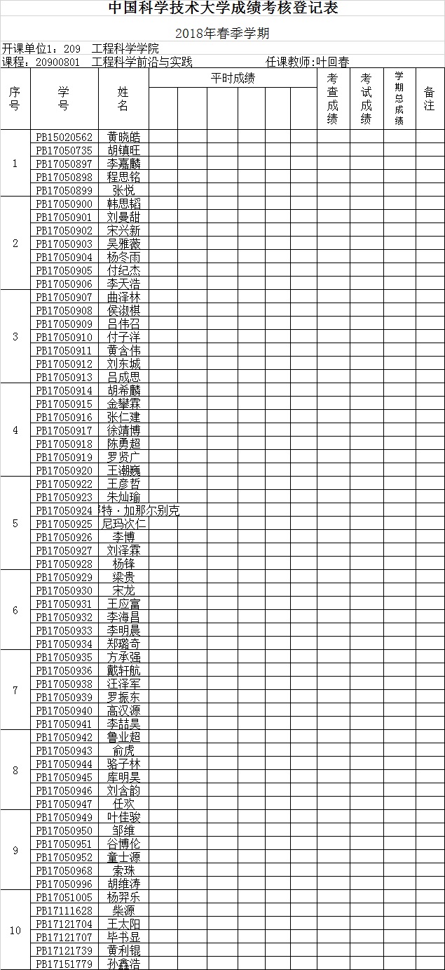 2018年春季学期《工程科学前沿与实践》实践部分周一分组名单