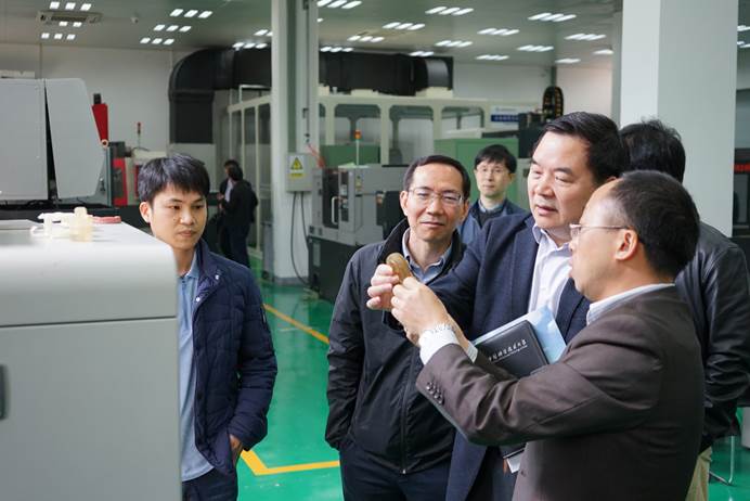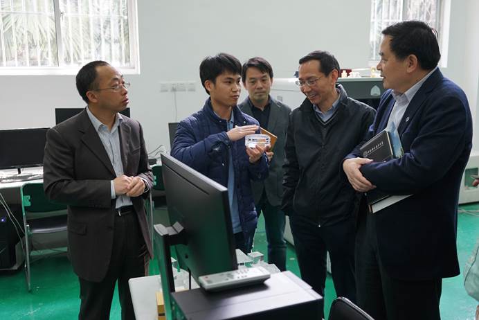 3月26日上午,包信和校长一行来到bet5365首页百度调研,工程科学学院教学副院长吴恒安教授全程陪同并详细介绍了中心的3D打印、激光内雕、机器人设计与制作等深受学生欢迎的教学实验和实践环节。