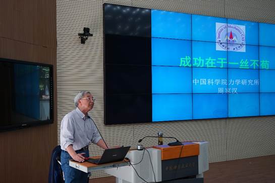 红专并进一甲子,科教报国六十年,时值我校即将迎来六十周年校庆之际,5月9日,应工程科学学院伍小平院士邀请,我校59级力学专业校友、中国科学院力学研究所周家汉研究员在西区教三楼3117教室为200多师生作了题为“成功在于一丝不苟”的励志教育科普报告,报告由伍小平院士主持。