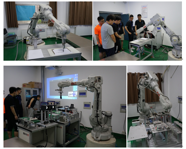 在力二楼101,志愿者们正在对工业机器人做最后的调试,他们计划以工业机器人装配齿轮的流水线,向嘉宾们展示工业机器人在实际工业生产中的应用。进入场地,入目即是一台正在完成写字任务的工业机器人,纸上不断描画着科大校徽,书写着“中国科学技术大学欢迎你!”,让嘉宾们充分感受到来自科大的热情。
