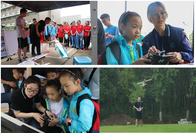 走出力二楼,来到力四楼前,这里是航模工作室的展区。工作人员展示了科大无人机协会制作的飞机模型,并详细介绍了不同飞机的工作原理。最让孩子们兴奋的莫过于模拟飞行,虽然只有短短的三分钟操作时间,但是看到电脑屏幕上的飞机在自己的操控下飞上天空,每一次都是那么激动人心。而当工作人员操控的飞机模型乘风飞上天空时,所有人都停下来仰望着。昏暗的天空下,那是最自由最美丽的存在。