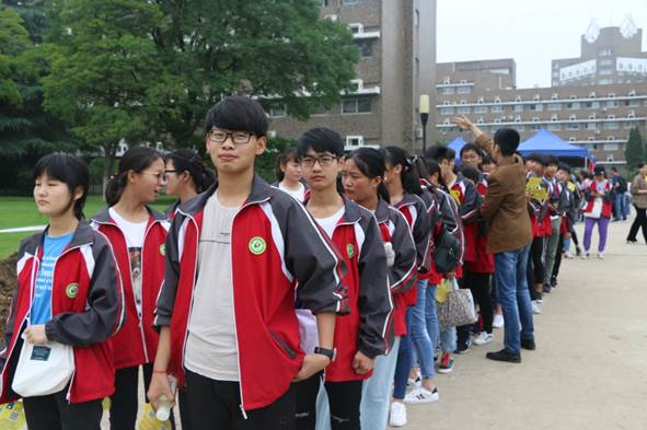 天色刚亮,来自濉溪县临溪中学的同学们就已经来到科大校园,他们了解到工程科学科普点的智能机器人、航模展示等项目很受嘉宾们的欢迎,所以他们早早地就来到工程科学科普点入口处排队,等待开放时间的到来。