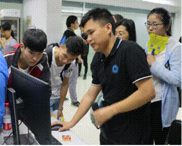 下午,开放展示前十分钟,编者赶到了入口大厅处,对引导员关振涛同学进行了简短的采访。“就是个移动路标啊,能有什么技术含量?”关同学对自己的工作概括的很独到,幽默诙谐的方式让编者捧腹。当被问及两天时间都在重复一项单调的工作是否感到乏味时,关同学笑道:“每一批观众都是不同的面孔,见到他们脸上期待的神情我就觉得自己的工作很有意义,当然如果有参观一遍不尽兴的,我也很乐意看到‘熟面孔’的。”看着排队等候的同学们眼中闪烁着对知识的渴求,在这一刻编者也逐渐体会到了本次活动的意义。