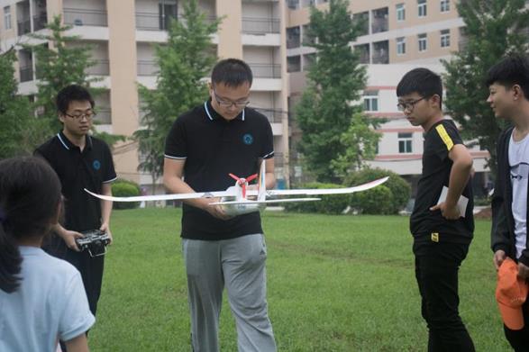 午饭时间将至,编者观察到一个中年大叔驻足良久,上前询问才得知,他是在等待上午时段最后一次航模飞行演示。随后编者深入了解得知,航模飞行演示是在固定时间进行的,飞行场次根据参观人数和天气决定。见此间隙,大叔走到海报前,开始了解飞行器的原理、特点和制作过程,等待飞行演示的开始。十分钟时间很快过去,编者发现航模演示区前围观的人越来越多,原来航模飞行演示即将开始,伴随着螺旋桨的转动,航模迅速升空,在空中完成了拉升、翻转、俯冲、回旋等一系列动作,在场观众惊叹不已。航模落地后,参观者们对航模的外形和内部结构显然有了兴趣,凑上前进行了仔细的观察,对航模制作的过程和原理有了更加直观的感受。