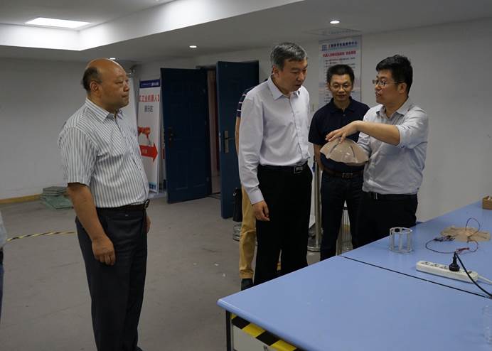 创新实践基地负责人董二宝副教授详细汇报了实践基地每年组织全校机器人大赛、组队参加全国性大赛以及最近获得首届中国高校智能机器人创意大赛一等奖的情况。