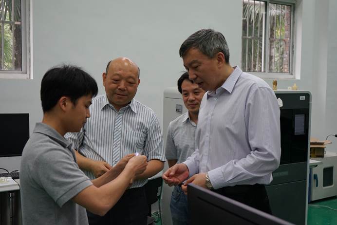 工程实践中心负责人叶回春汇报了数控加工、3D打印、激光内雕等设备在大一课程《工程科学前沿与实践》的实验教学情况,以及3D打印、激光内雕等深受学生欢迎的教学实验和实践项目每年在科技活动周对社会开放的情况。